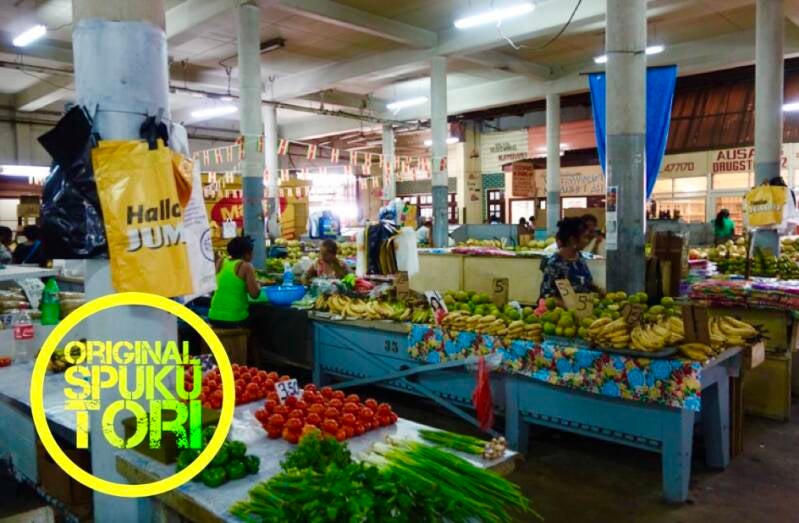 Ik ging de poort van de Centrale Markt binnen en begon mijn wandeling langs de stents. Mijn zoon lag rustig te slapen in mijn schouderdoekje. Ik had een breed en lang schouderdoek gekocht die je als een soort hangmat om je hals en schouder kon dragen zodat mijn zoon erin kon slapen. Ik had dan mijn handen vrij om andere dingen te doen. De hindoestaanse mevrouw bij de stent waar ze verse tomaten verkochten, was heel ingenomen met mijn zoontje. Toen ze me de tomaten gaf, zei ze nog met een lach op haar gezicht: “a druk tumsie gi a baby jere vrouw, betre yo no go doro na insey”.
